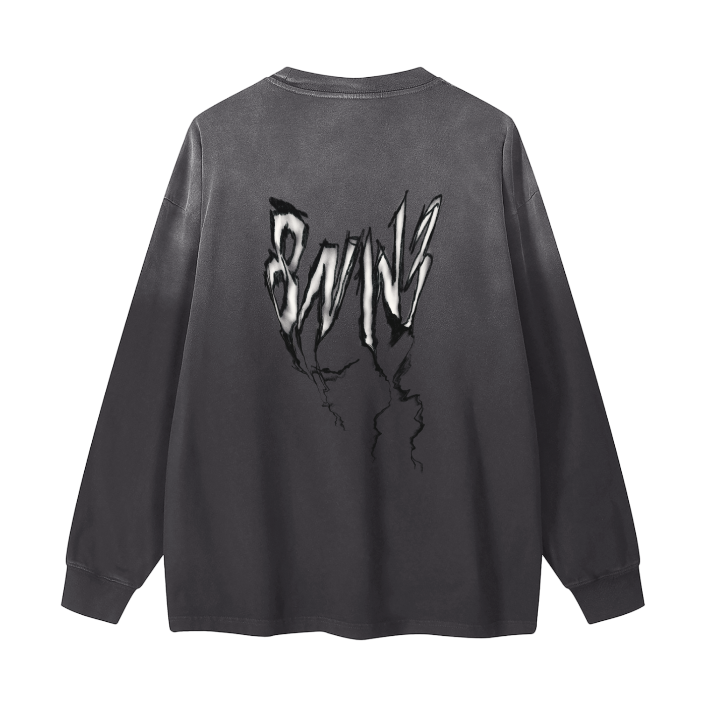 Unleash your inner chaos with this gradient-washed long sleeve that's anything but ordinary. The color shifts wildly across the fabric like a fever dream, refusing to stay in one place. Bold, unpredictable, unapologetically wild—this tee doesn't play by the rules. Throw it on and watch heads turn. For those who live on the edge and love every second of it.